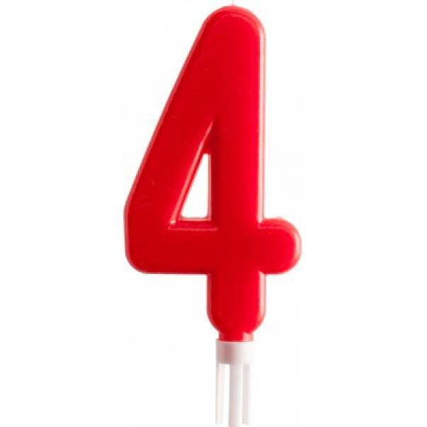 Svíčka na dort 15cm číslo 4 červená - Dekora