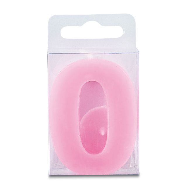 Svíčka ve tvaru číslice 0, růžová barva, výška 4 cm. Je vhodná především pro zdobení narozeninového dortu a podobných moučníků. Svíčka splňuje všechny bezpečnostní předpisy.
