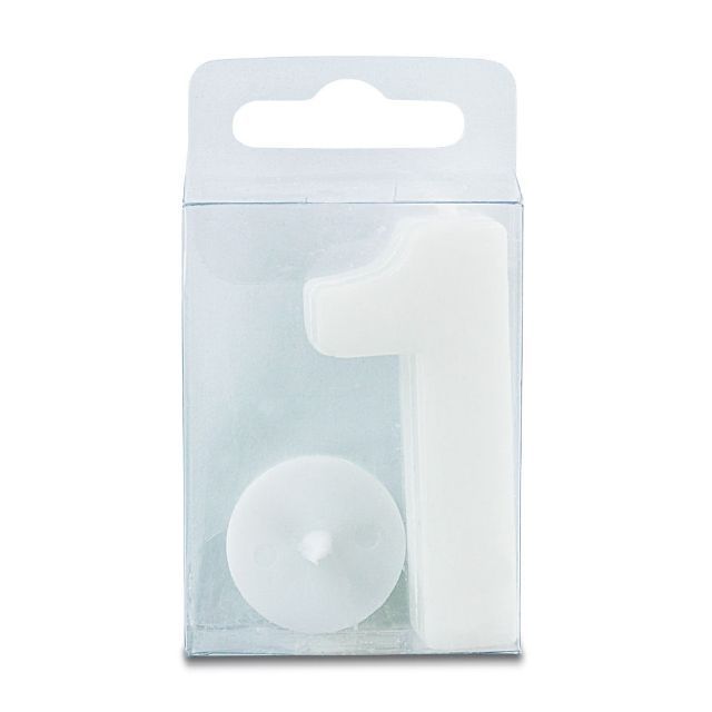 Svíčka ve tvaru číslice 1, výška 4 cm, bílá. Je vhodná především na narozeninový dort a zdobení podobných moučníků. Svíčka zcela splňuje všechny bezpečnostní předpisy.