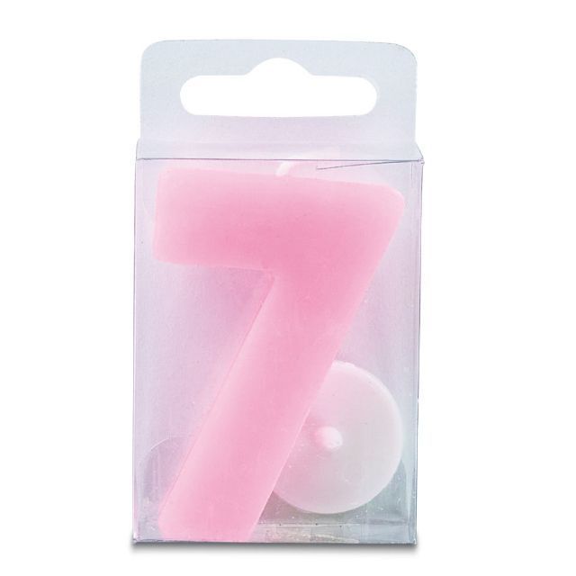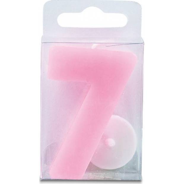 Svíčka ve tvaru číslice 7, růžová barva, výška 4 cm. Je vhodná především pro zdobení narozeninového dortu a podobných moučníků. Svíčka splňuje všechny bezpečnostní předpisy.