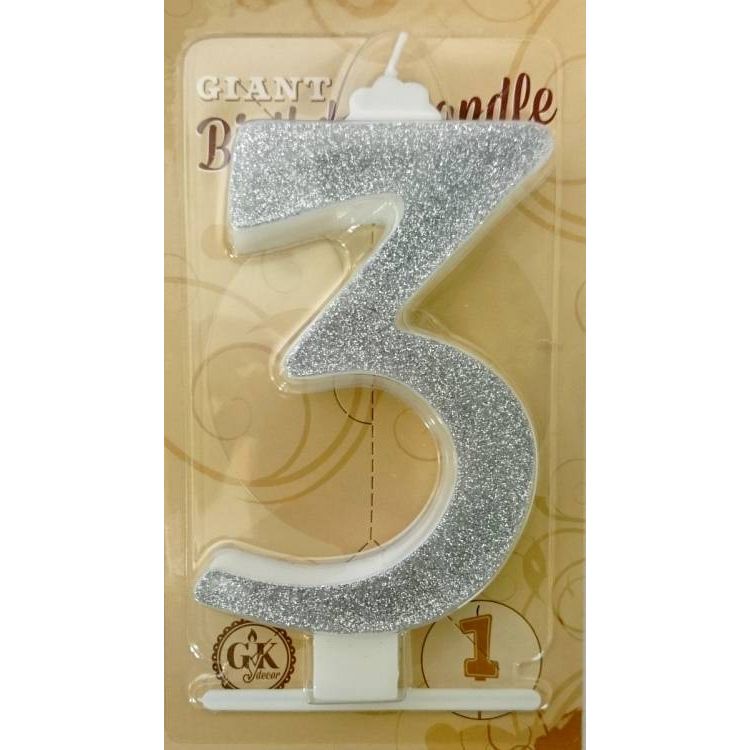 Svíčka velká stříbrná číslo 3 6424 dortis