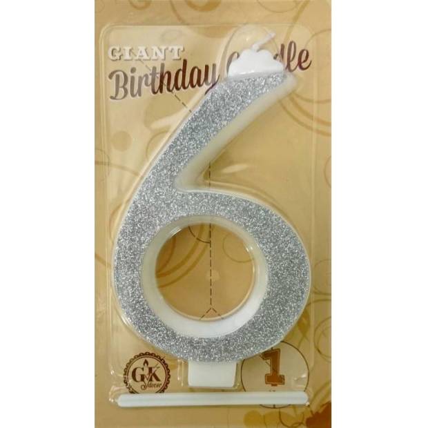 Svíčka velká stříbrná číslo 6 6427 dortis