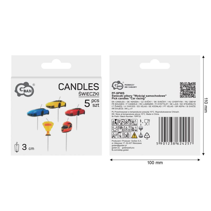 Svíčky na dort 5ks automobilové závody - Godan