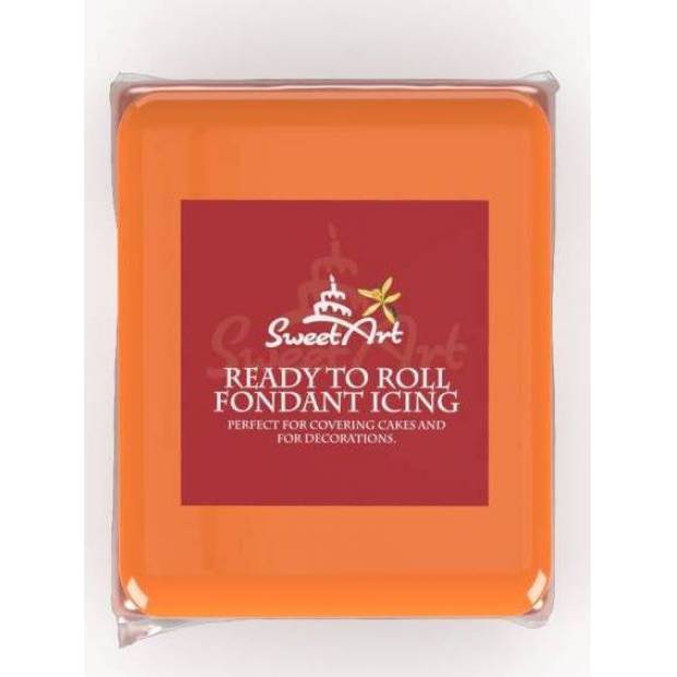 Oranžová cukrová hmota s vanilkovou příchutí na potahování dortů a výrobu cukrových figurek.