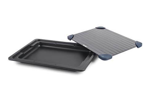 Tác na rychlejší rozmrazování potravin je opatřen vyjímatelnou deskou, pod kterou stéká voda z rozmrazovaných potravin. Všechny plochy jsou plně omyvatelné.