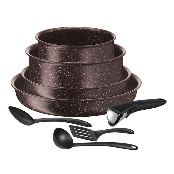 Od varné desky po troubu, na stůl, v lednici, produkty Ingenio jsou všestranné a stohovatelné pro optimální skladování a úsporu místa ve vašich skříních. Jednotlivé pánve mají nepřilnavý povrch titanium pro je zdravý (bez pfoa) a vydrží až 32 000 cyklů používání (8 let). Nechybí ani indikátor teploty tefal thermo-spot (kamna). Výhodou je rukojeť: 100% bezpečná díky 3bodovému upevňovacímu systému, nosnost až 10 kg; dle interních testů. Tento set má snadné čištění a je vhodný do myčky (kromě rukojeti)