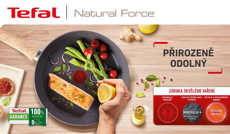 Objevte přírodou inspirovanou pánev Tefal Natural Force, která je navržena tak, každý den připravte zdravou a bezpečnou stravu pro celou rodinu. Omezte množství použitého tuku. Nádobí Tefal Natural Force má ultra odolný minerální povlak Mineralia +, díky kterému můžete připravit zdravější obaly bez obav z přísad, které se lepí na povrch pánve. Mineralia + je zárukou dokonalých výsledků bez ulpívání při snižování množství spotřebovaného tuku.