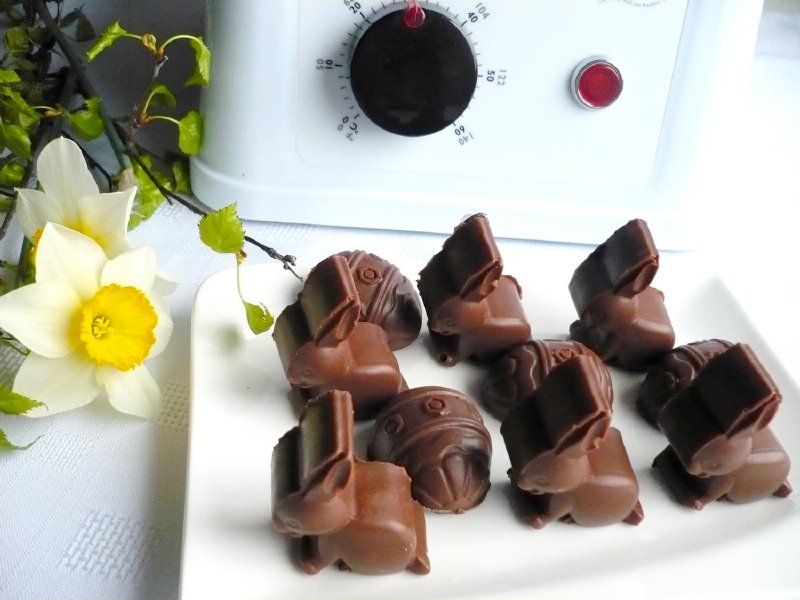 Tento přístroj usnadní práci všem, kteří čokoládu používají na výrobu různých pralinek, na polévaní dortů a jiných moučníků, při přípravě cukroví a třeba namáčení ovoce, včetně toho sušeného. Věřím, že budete s přístrojem spokojeni, tak jako já. V eshopu jsou v nabídce i kvalitní teploměry určené pro práci s čokoládou a taktéž různé nástroje, jako napichovátka, očka a vidličky. Pro ty z Vás, kteří pracujete s menším množstvím čokolády, tak je v nabídce temperovací přístroj menší velikosti. M.F.
