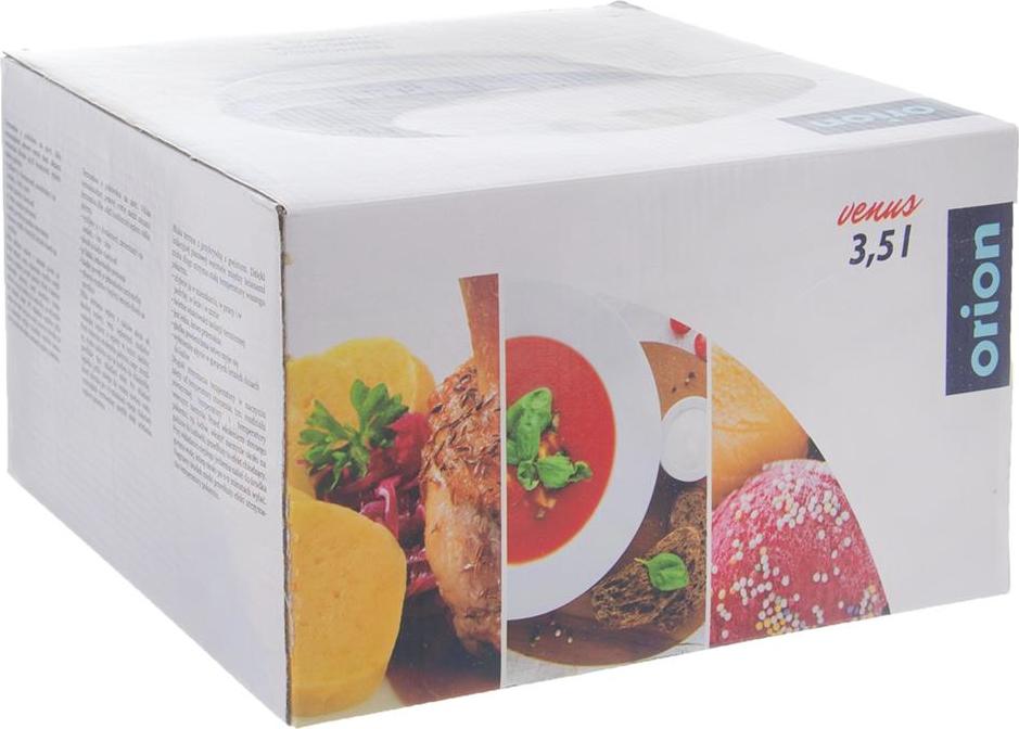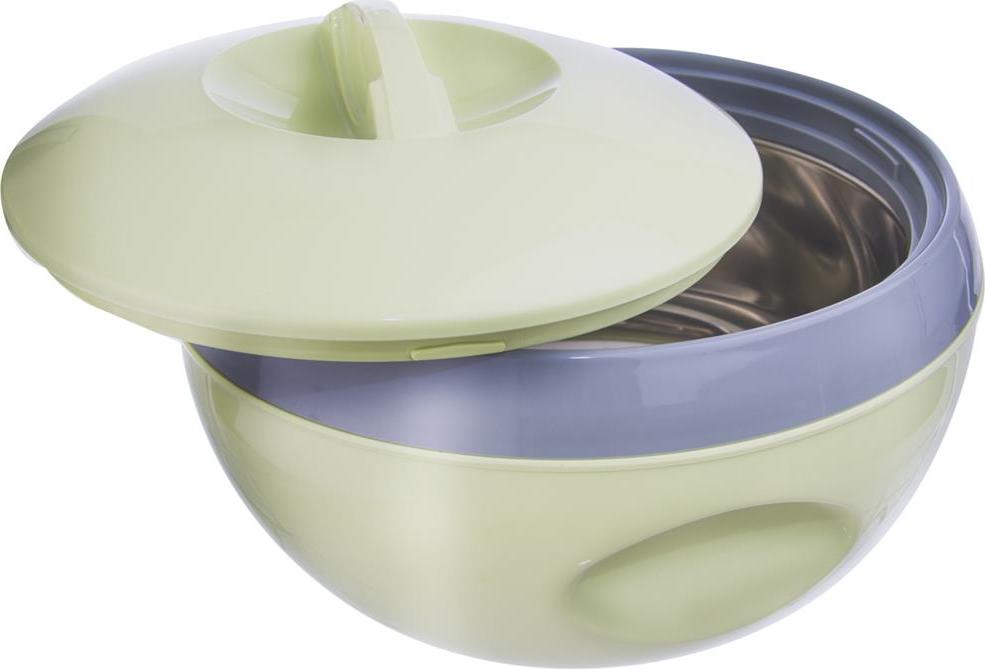 Skládá se z plastového obalu a nerezového vnitřku. Snadné uzavření umožňuje otočné plastové termo víčko. Objem misky je 3,5 l.