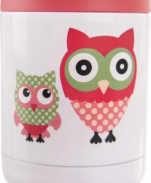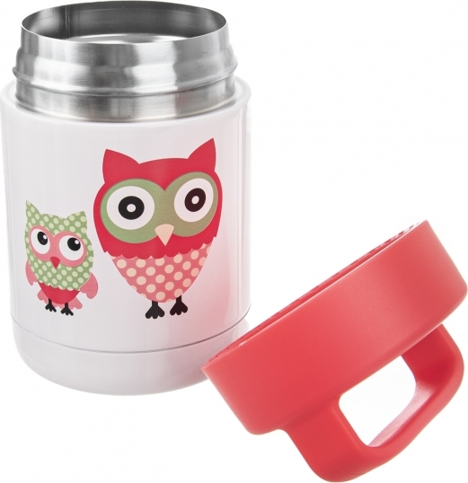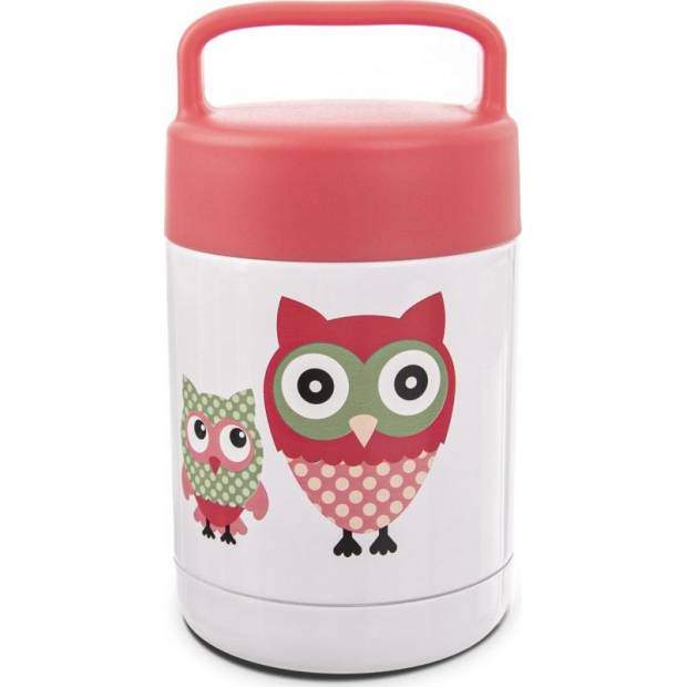 Termomísu zdobí roztomilý dekor dvou barevných soviček – motiv, který si zamilují děti i dospělí. Její výhodou je plastové termo víčko na závit, které umožňuje uzavření nádoby, a praktické ucho usnadňující její přenášení. Má objem 480 ml, ovšem doporučujeme ji plnit maximálně do 420 ml.