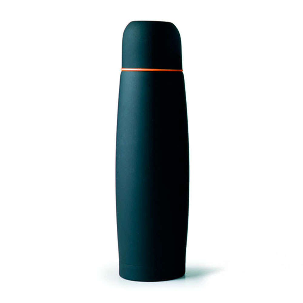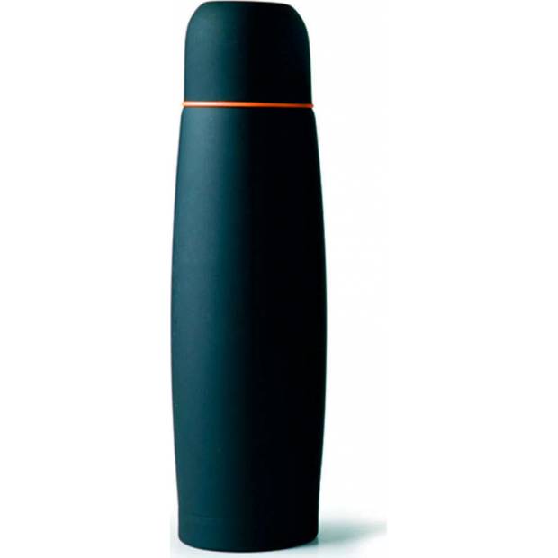 Černá termoska s oranžovým pruhem o objemu 1 l.