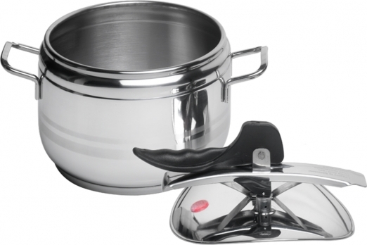 Silnostěnný hrnec se sendvičovým dnem se uzavírá bezpečnou tlakovou poklicí s pákovým systémem, díky níž lze rychleji uvařit hovězí maso na guláš, králíka na smetaně, segedínek nebo kuře na paprice. A kdo nemá čas několik hodin táhnout masový vývar, ocení rychlou a jednoduchou přípravu.