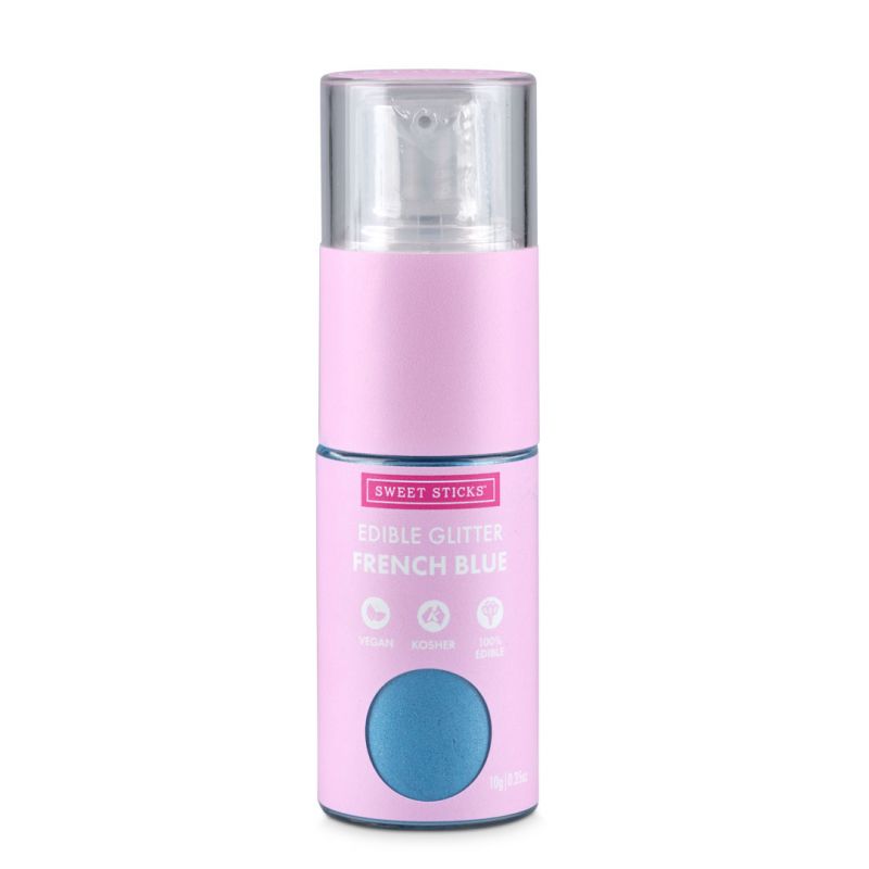Třpytky v rozprašovači od Sweet stick. Odstín francouzská modrá. Balení 10 g.