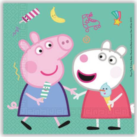 Papírové ubrousky s motivem Prasátko Pepa. Rozměry 33 x 33 cm.