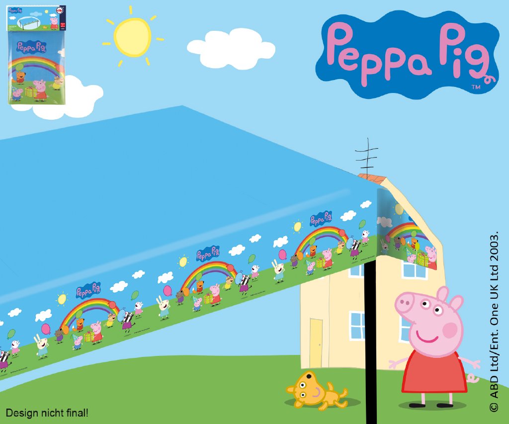 Doplňte svou dětskou oslavu tímto veselým ubrusem. Na ubrusu jsou pěkné obrázky prasátka Peppa. Rozměry 180 x 120 cm.