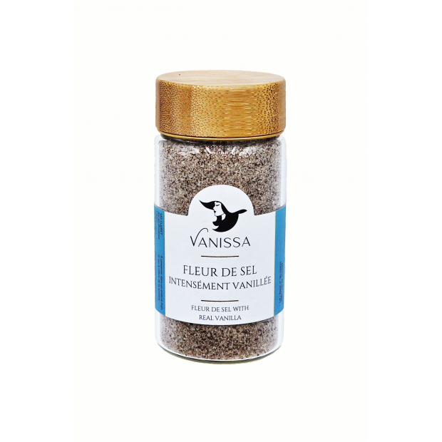 Fleur de Sel (francouzsky „Květ soli“) je ručně sklízená mořská sůl, která se tvoří na povrchu solných lůžek a sbírají ji pracovníci, kteří seškrabují pouze horní vrstvu soli. Fleur de Sel, bohatá na minerály a vynikající chuťové vlastnosti, je jednou z nejdražších solí na světě. Naše Fleur de Sel se sbírá u pobřeží Bretaně (Francie) a kombinuje se s prémiovými mletými vanilkovými lusky. Vanilka Fleur de Sel se skvěle hodí k mořským plodům a drůbeži a přirozeně se hodí ke sladkokyselým jídlům. Vanilla Fleur de Sel je také skvělá pro výrobu karamelů z vanilkových lusků, Foie Gras a dokonce je z ní nejlepší margarita rimmer vůbec.