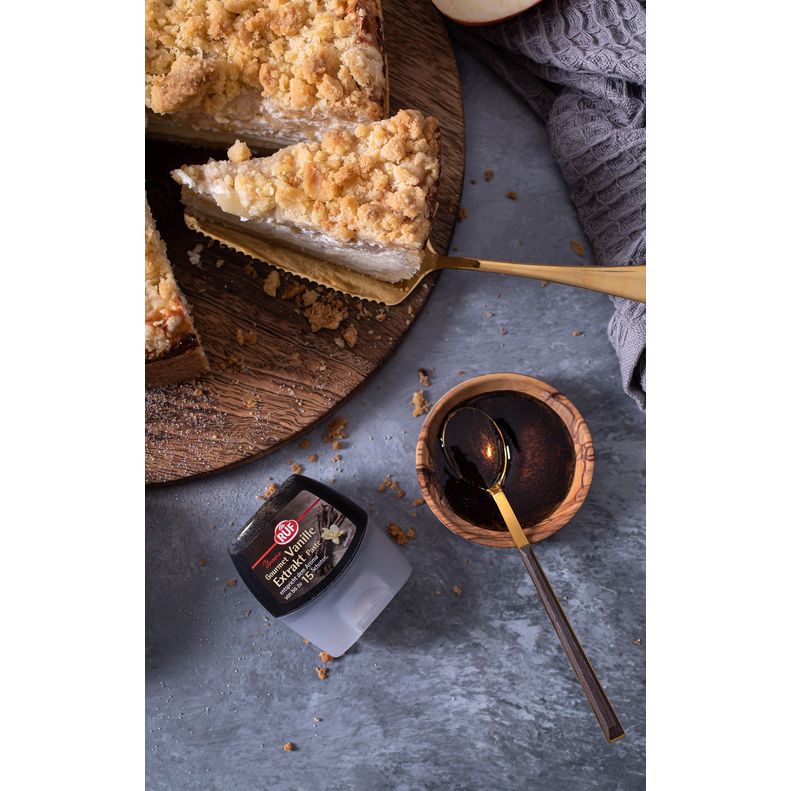 Vanilka je klíčem ke všem druhům pečiva a zákusků. Tuto jemnou chuť potřebuje, aby se probudila charakteristická chuť mnoha různých výtvorů od crème brûlée po vanilkovou zmrzlinu. Málokdo z nás má vždy doma skutečný vanilkový lusk, protože vanilkové lusky jsou v obchodech stále obtížněji dostupné. Přírodní vanilkový extrakt je perfektní alternativou. Jedna láhev odpovídá vůni 14 vanilkových lusků tahitensis. Tato odrůda je, jak název napovídá, pěstována na jižním moři na ostrově Tahiti. Je to nejdražší odrůda vanilky na světě. Tento exkluzivní vanilkový modul je v současné době velmi vyhledávaný v gurmánské kuchyni. Vynikající chuť a exotické květinové vůně jistě obohatí vaše dorty, krémy, dezerty a další pečivo. Lžička této esence je ekvivalentem jednoho vanilkového lusku. Extrakt zůstane čerstvý déle a udržuje jeho chuť v praktické, znovu uzavíratelné krabičce. Perfektní způsob, jak vylepšit dorty, krémy, těsta, dezerty a nápoje.