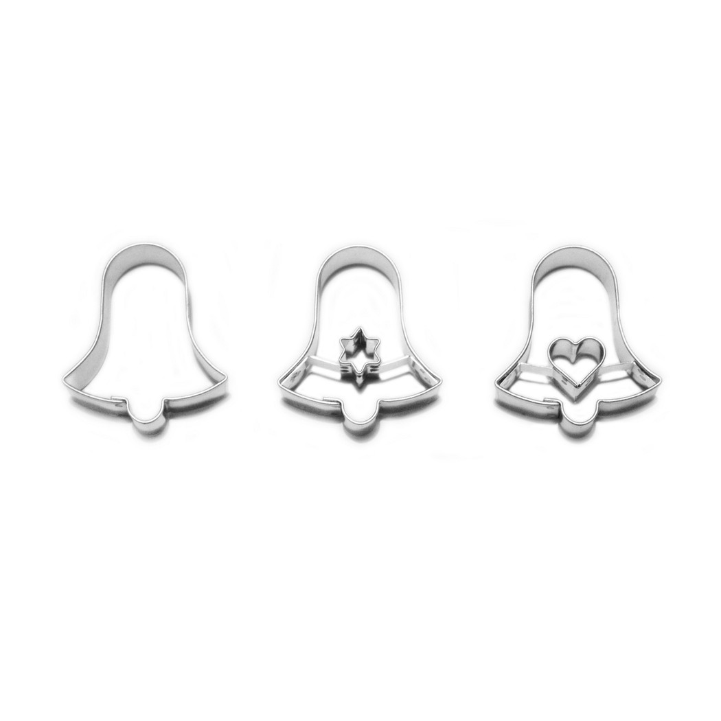 Sada tří kusů vykrajovátek ve tvaru zvonku s různými středy.