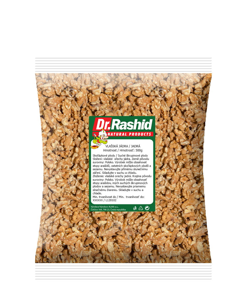 Hmotnost balení 500 kg je ideální velikost na rodinnou zásobu pro milovníky vlašských oříšků nebo nadšených cukrářek či pekařek (samozřejmě i cukrářů a pekařů). Nezkonzumované množství je vhodné pečlivě uzavřít a uschovat na chladnějším místě.