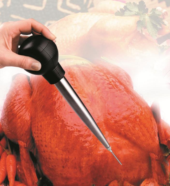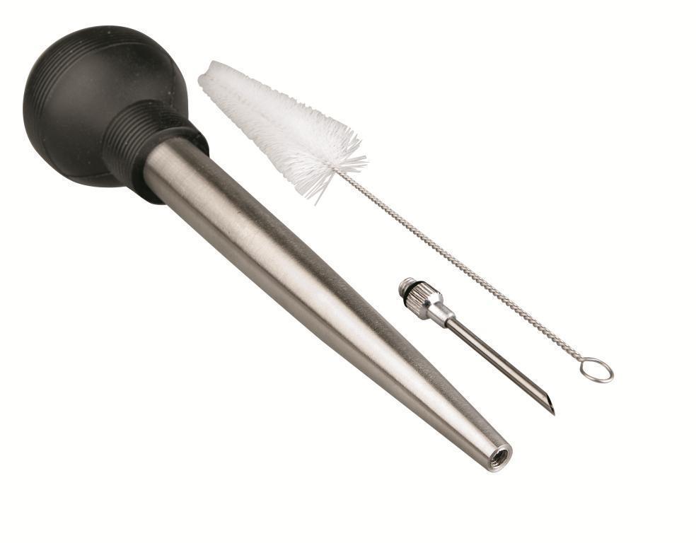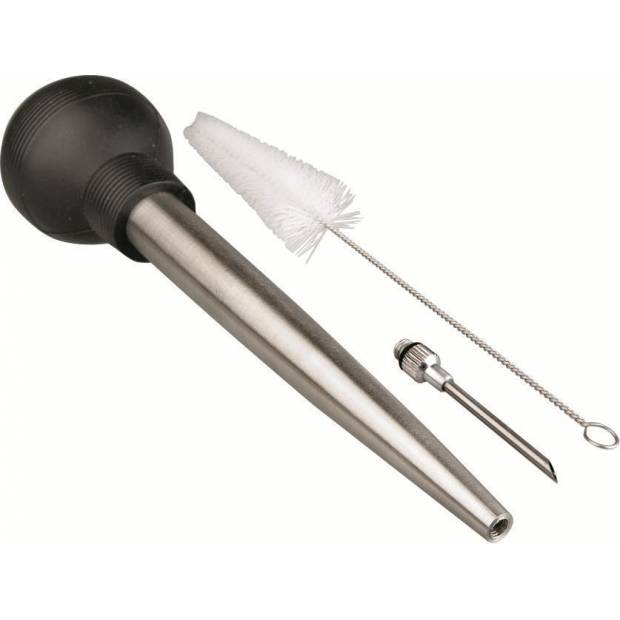 Jednoduché aplikování omáček, kořeněných směsí a dalších ingrediencí do útrob masitých pochutin. Součástí vstřikovače je malá jehla pro snadnější průnik do masa. Kromě těchto částí obdržíte také praktickou stěrku, prostřednictvím které lze bez problému čistit vnitřní část vstřikovače. Snadná údržba produktu.