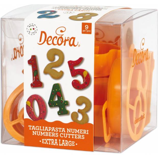 Vykrajovátka ve tvaru číslic. V balení 9 ks. Velikost 7,5 cm.