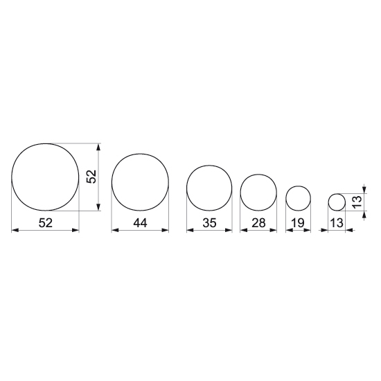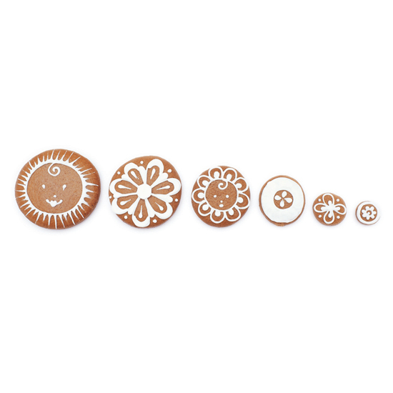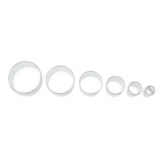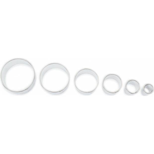 Sada šesti kusů vyrajovátek ve tvaru hladkých koleček různých průměrů.