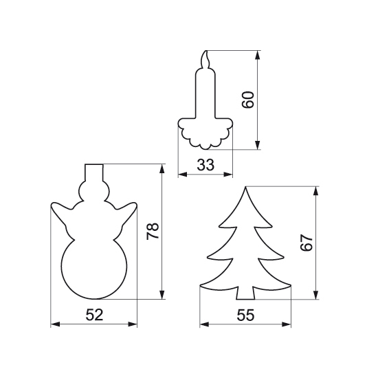 Středně velké vzory s vánoční tématikou velmi snadno vykrájíte z rozváleného těsta, marcipánu nebo fondánu. Stačí lehce přitlačit a ostrá hrana vykrajovačky vykousne další postavičku nebo symbol Vánoc. Dvojitý pocínovaný plech v horní části nástroje zaručí bezpečné uchopení, stejně jako se postará o precizní udržení tvaru. Snadno omyvatelné, cenově přístupné a v tradičním provedení podle původních vzorů. I s poměrně nepříliš rozsáhlou sadou přinesete do svého domova vánoční náladu, při pečení těsto zavoní a už se můžete začít ohlížet, kolik je dárků pod stromečkem!