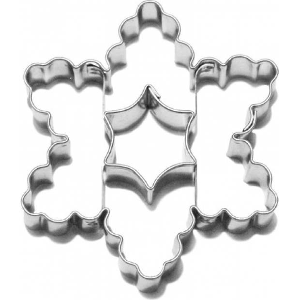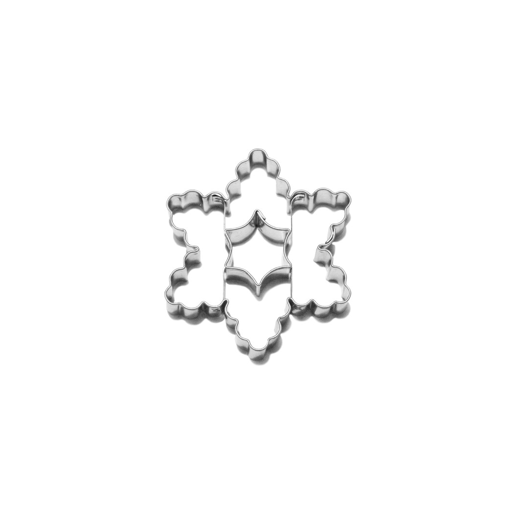 Vykrajovátko na cukroví z různých druhů těsta v podobě vroubkované hvězdy, které má uprostřed vykrojenou malou oblou hvězdičku. Na konečné ozdobení upečeného kolečka můžete použít různé cukrářské hmoty, krémy i jedlé zdobení, a také zdobící sady, které máme v nabídce. Vykrajovátko je vyrobené ze zdravotně nezávadného pocínovaného plechu a velmi snadno se po použití umývá. Rozměry: 5,7 x 6,7 cm / výška 1,6 cm