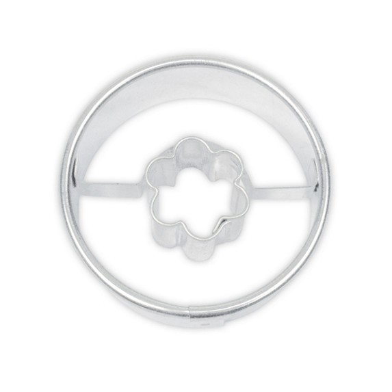 Vykrajovátko na cukroví ve tvaru kolečka průměrem 4 cm a květem uprostřed