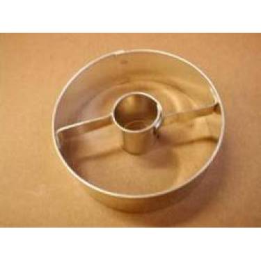 Větší hladké vykrajovátko je vyrobené z pocínovaného plechu. Střed vykrajovátka je ve tvaru kolečka. Ideální vykrajovátko na přípravu slepovaného cukroví. Myjte pouze ručně.