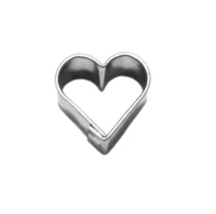 Miniaturní vykrajovátko ve tvaru srdíčka z pocínovaného plechu.