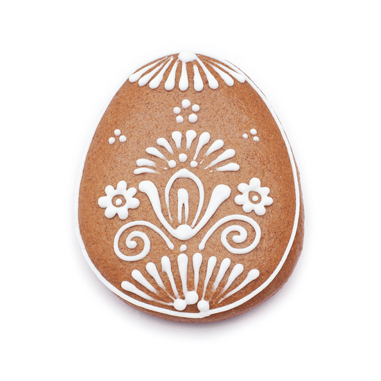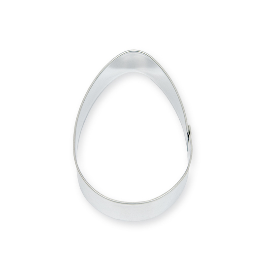 Vykrajovátko na cukroví ve tvaru vajíčka o velikosti 3,8 x 5,4 cm.