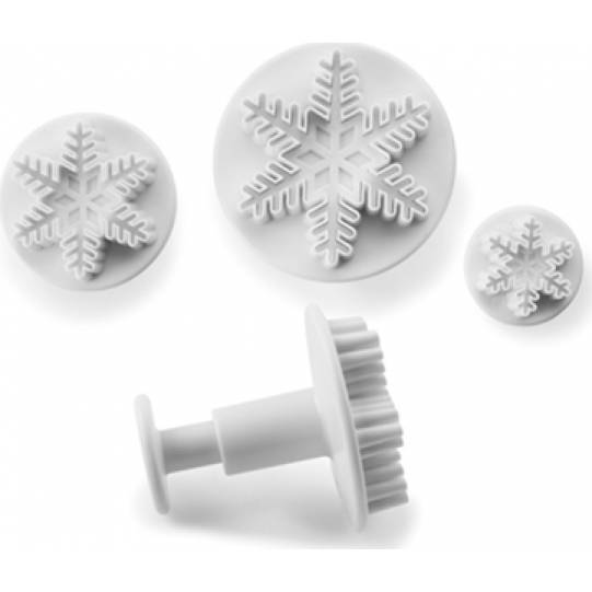 Pomocí vypichovátka otisknete na cukrářskou hmotu vzor a zároveň z ní vykrojíte perfektní vločku. Díky pístovému stlačování snadno hmotu z vypichovátka vyloupnete. Největší vypichovátko v sadě má průměr 5,5 cm, ostatní dvě vločky pak 4 cm a 2,5 cm. Materiál: plast.