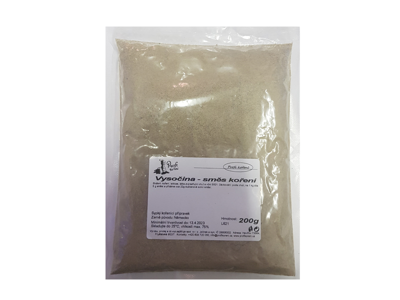 Vyrobit si salám vysočinu je s tímto kořením možné. Dávkování: podle chuti, na 1 kg díla 5 g směsi a přidáme cca 22g dusitanové solici směsi. Složení: koření, laktoza, látka zvýrazňující chuť a vůni E621