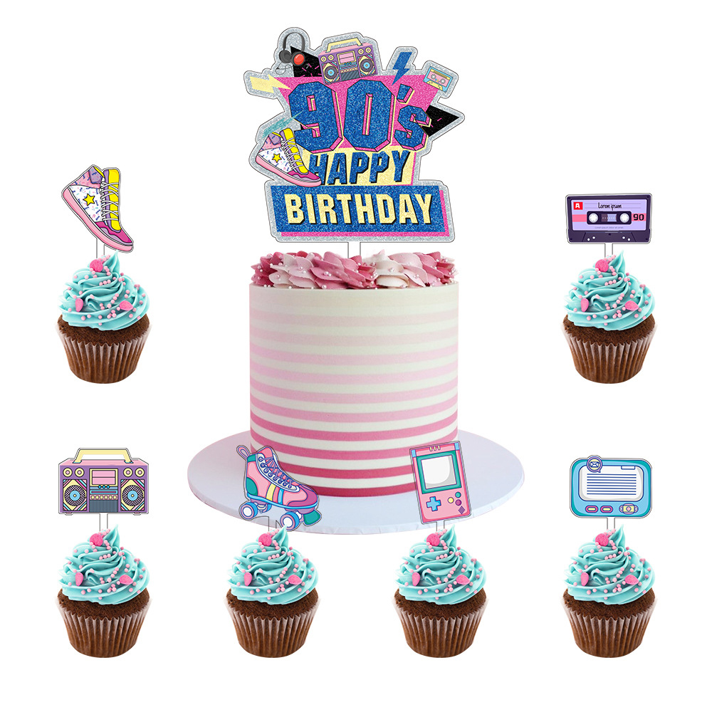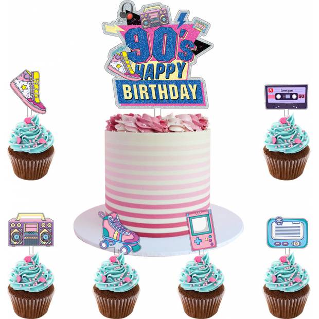 Zápich do dortu s motivem 90.léta. V balení 7 ks.