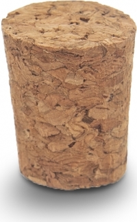 Zátka korková. 10 ks.Rozměry: pr. 2/1,7 cm, v. 2,6 cm.