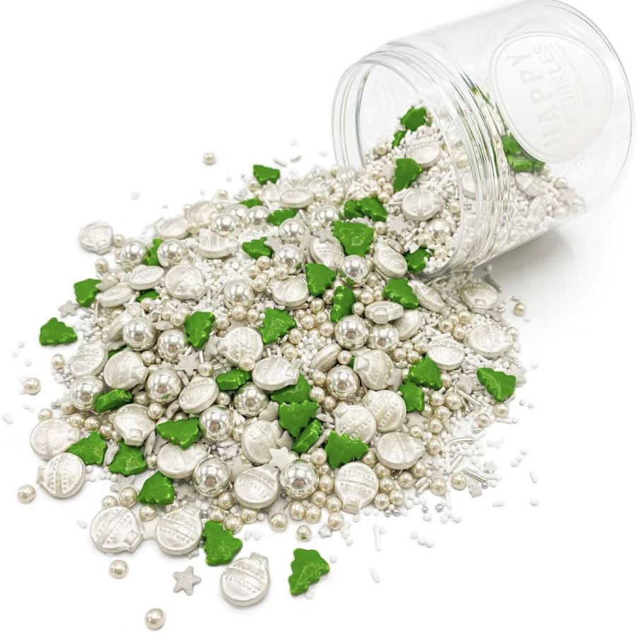 Se Sprinkles Christmas Eve 90g můžete proměnit jakékoli pečení v krásnou vánoční scénu. Posypová směs obsahuje různé figurky, jako jsou vánoční koule, prameny, hvězdy a vánoční stromky v barvách stříbrné, zelené a bílé. Díky krásné směsi různých figurek můžete s Sprinkles Christmas Eve dokonale ozdobit dorty, cupcaky, dorty, zákusky a další pochoutky. Tuto směs můžete použít i v kombinaci s našimi dalšími jedlými posypy. Například použijte nonpareils, cukrové perly nebo barevný cukr k vytvoření slavnostní scény.