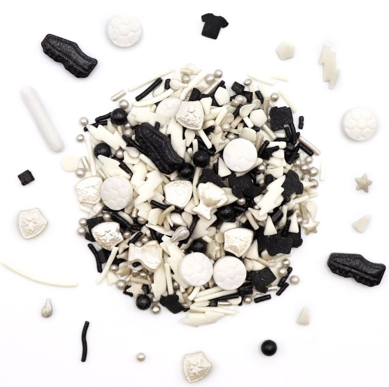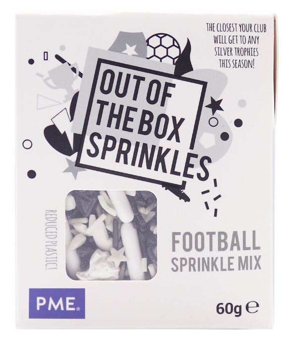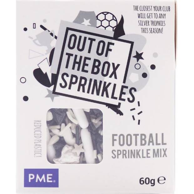 Ozdobte své dorty, cupcaky, donuty a další dobroty fotbalovými dekoracemi PME Out of the Box. S tímto sypáním Out of the Box od PME můžete během několika minut udělat radost svým sportovním nadšencům. Použijte je na (dětskou) narozeninovou oslavu, baby shower, letní párty nebo jen tak pro zábavu. Vaše dobroty si zamiluje každý. Pomocí těchto posypů můžete ozdobit cupcaky, dorty, donuty, dortíky, zákusky, sušenky a další dobroty. Baleno v papírové krabičce.