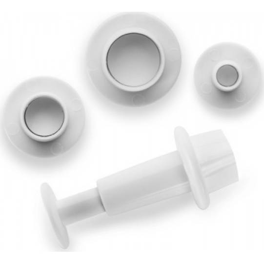 Občas je třeba pro zdobení větší množství koleček nebo kroužků, které budou buď vytvářet ozdobné ornamenty, nebo nahradí oči, knoflíky a podobné detaily u zdobených motivů. V tom případě není nic jednoduššího, než sáhnout po sadě vykrajovacích koleček a kroužků, nabízejí průměr 0,6, 1 a 1,3 cm, z dobře připravené hmoty jde vykrajování jako po másle a pomocí vyhazovacího nástroje nemusíme z vykrajovaček hotové tvary pracně „dobývat“ a riskovat jejich deformaci. Když je po ruce správné náčiní, jde každá práce mnohem snadněji.