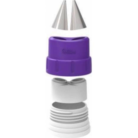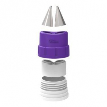 "Buďte kreativní a s touto sadou snadno zvládnete zdobení dortu, když použijete tento dvojitý set. Umožňuje současně použít dva různé zdobící tipy pro vytvoření dvou různých vzorků. Už nikdy jej nebudete chtít pustit z ruky. Souprava obsahuje: duo vazební spojku, okraj 104, hvězdicový hrot 22, kulatý hrot 10, hrot vlnka 48 a 6 jednorázové zdobící sáčky. Duo propojovací hroty umožňují propojit dva různé modely současně. Každá duo spojka má tři části: spojovací prstenec, držák hrotu a kotvu. Hodí se pro všechny zdobící směsi Wilton. Vyrobeno z kovových a plastových materiálů. Před prvním použitím a po každém použití umyjte v teplé mýdlové vodě, abyste dosáhli nejlepších výsledků. Jednoduchý, ale velmi efektní zdobící sáček vás bude bavit.
