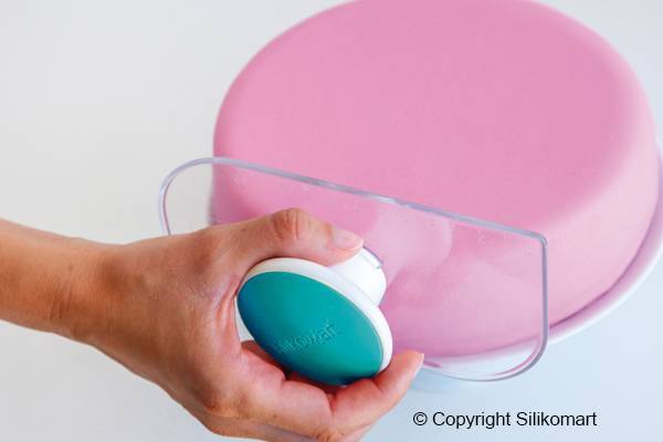 Průsvitná žehlička se silikonovým držátkem na vyhlazování dortů.