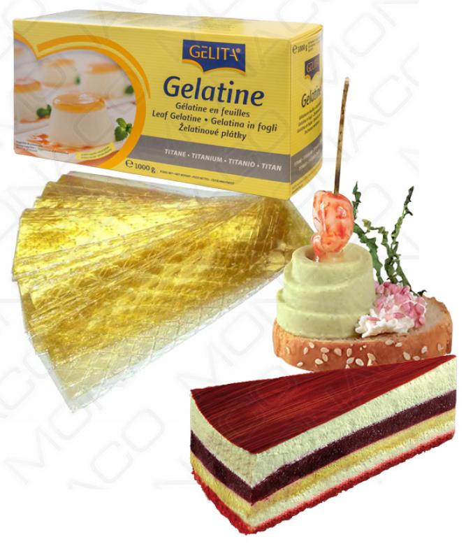 Listová želatina je přírodní kolagenový protein. Čím vyšší je počet květů, tím větší je želatinová síla želatiny. Role želatiny: Gelující činidlo Zahušťovadlo do omáček, coulis... Texturizační prostředek na želé, dezerty... Objemový prostředek pro marshmallows Konzervační Stabilizační činidlo navíc k potravinářským přísadám, jako je pektin nebo karubová guma do zmrzliny Pěnidlo k zabudování do sifonu Návod na použití želatiny: Na 1 litr tekutiny použijte 12 plátků potravinářské želatiny. Namočte listy do samostatné nádoby se studenou vodou po dobu asi 5 až 7 minut, poté je vyjměte a jemně vymačkejte, abyste extrahovali vodu, než ji zapracujete do vaší tekutiny. Pro studené pokrmy, například krém, promíchejte a mírně zahřejte vylisovanou želatinu, dokud se nerozpustí, poté pomalu vmíchejte studenou směs a před podáváním nechte alespoň 4 hodiny vychladnout. Dávejte pozor, abyste nikdy neudělali opak.