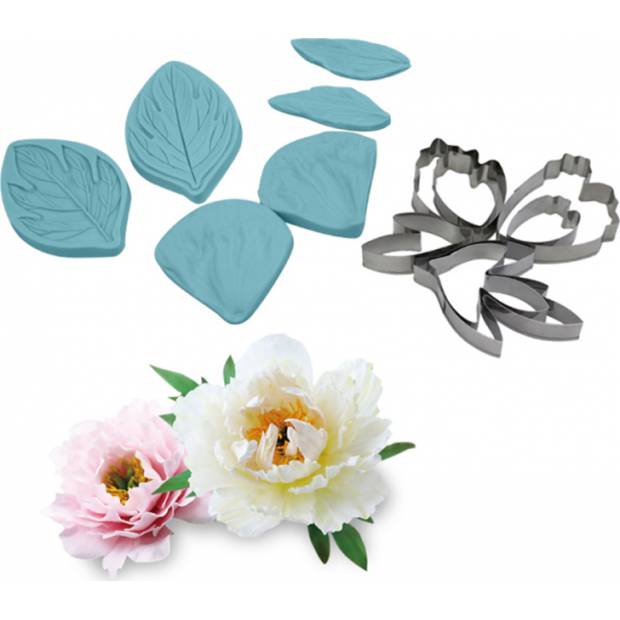 S pomocí tohoto žilkovače a vykrajovátek můžete vytvářet dokonalé pivoňky s květy a listy z marcipánu, fondánu nebo modelovací čokolády. Žilkovač a vykrajovátka jsou vyrobeny z kvalitního materiálu.