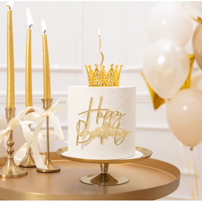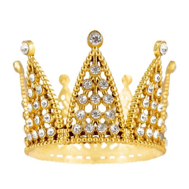Nejedlá dekorace kovová Koruna zlatá s perlami a motýlky