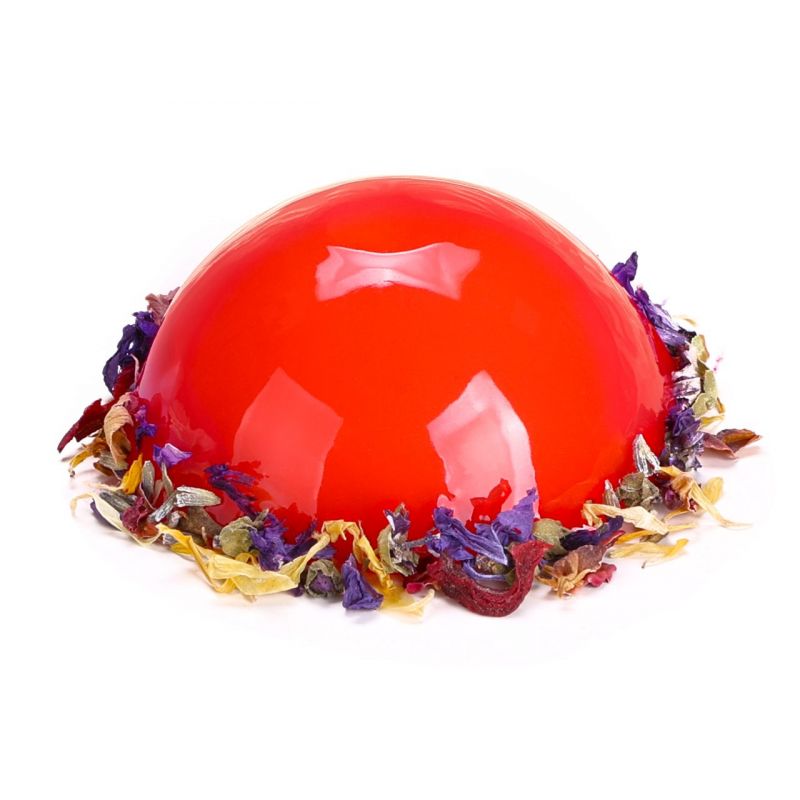 Zrcadlová glazura je chutný a efektní způsob, jak ozdobit pěnové dorty a jednoporcové dorty, které se zmrazují ihned po přípravě a sestavení. Připravujeme je v silikonových formičkách - díky tomu po vyndání zůstává jejich povrch dokonale hladký a po pokrytí zrcadlovou glazurou vypadá krásně. Dezert nebo dort se pokryje pouze tenkou vrstvou polevy, která není tvrdá a úplně neztvrdne – nicméně díky přidání želatiny zůstává pružná a dobře přilne k povrchu dortu.